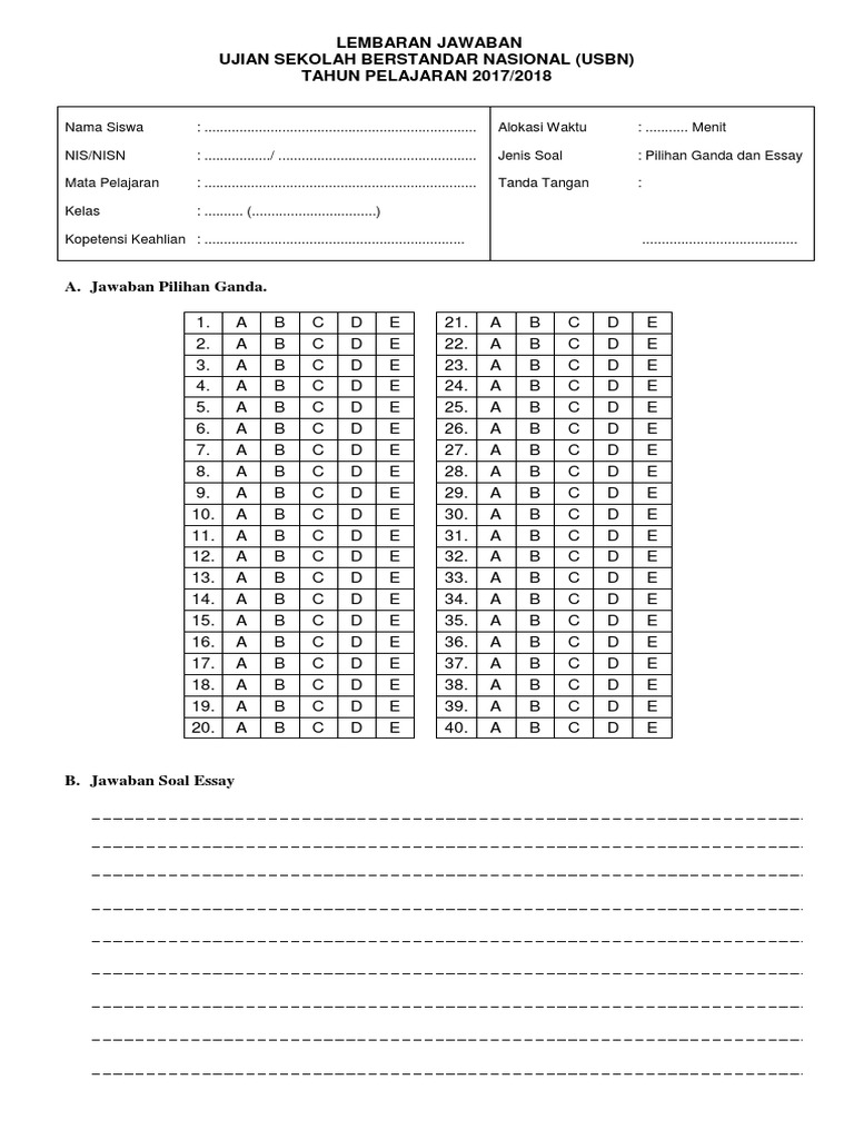 Contoh lembar jawaban pilihan ganda dan essay sd, lembar jawaban pilihan ganda 40 soal, lembar jawaban essay usbn contoh lembar jawaban komputer ljk un us semua jenjang sumber : Jawaban atas soal pilihan ganda (multiple choice) di tulis pada naskah lembar soal dan jawaban essay ditulis pada lembar jawaban ujian lainnya. Sekolah memiliki dokumen standar 2. Yang berisi pilihan ganda dan jawaban pilihan ganda uas silahkan di download untuk. Kebanyakan pemakai system informasi manajemen berdasarkan computer diantaranya yang tidak termasuk adalah :a.